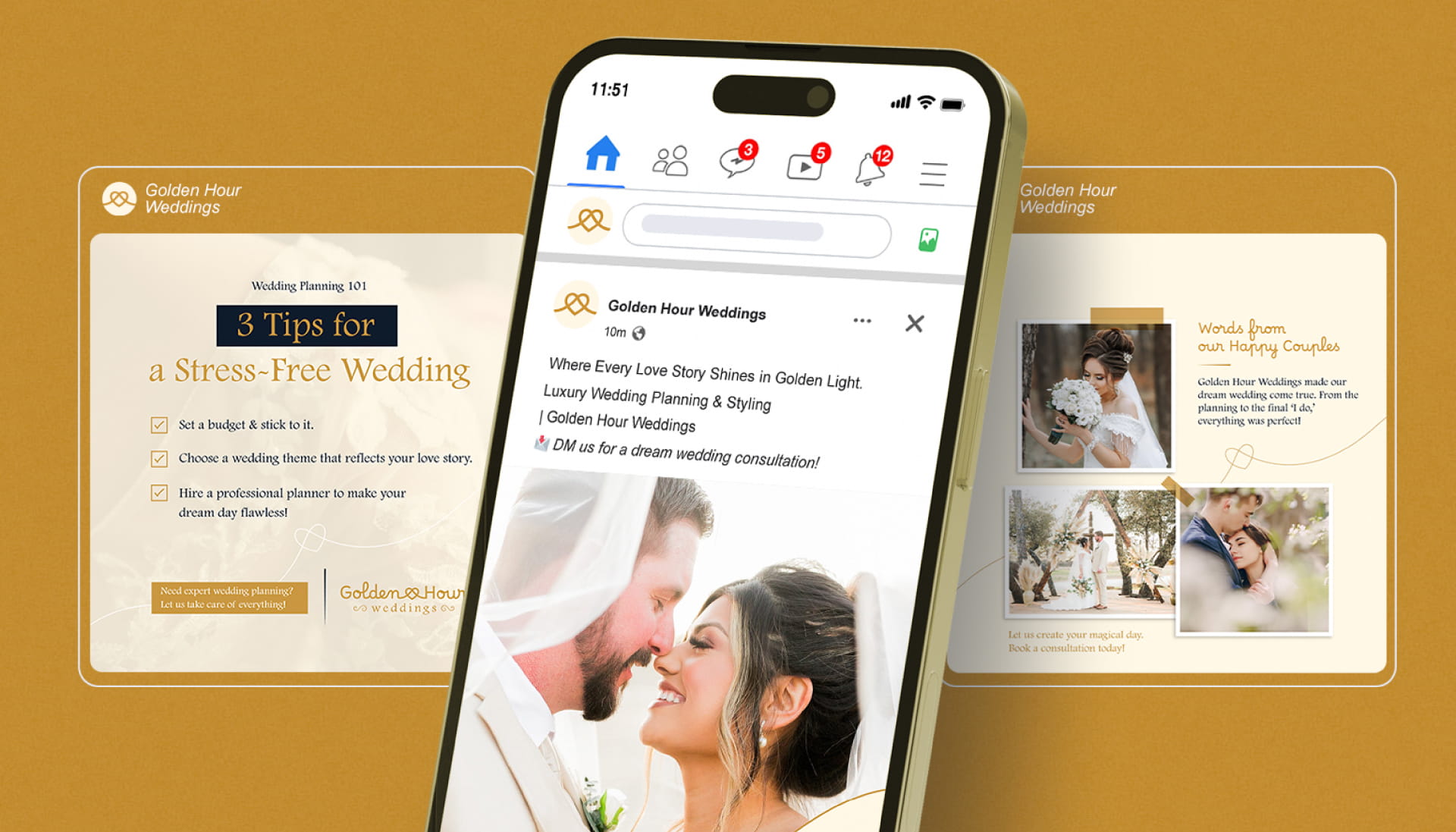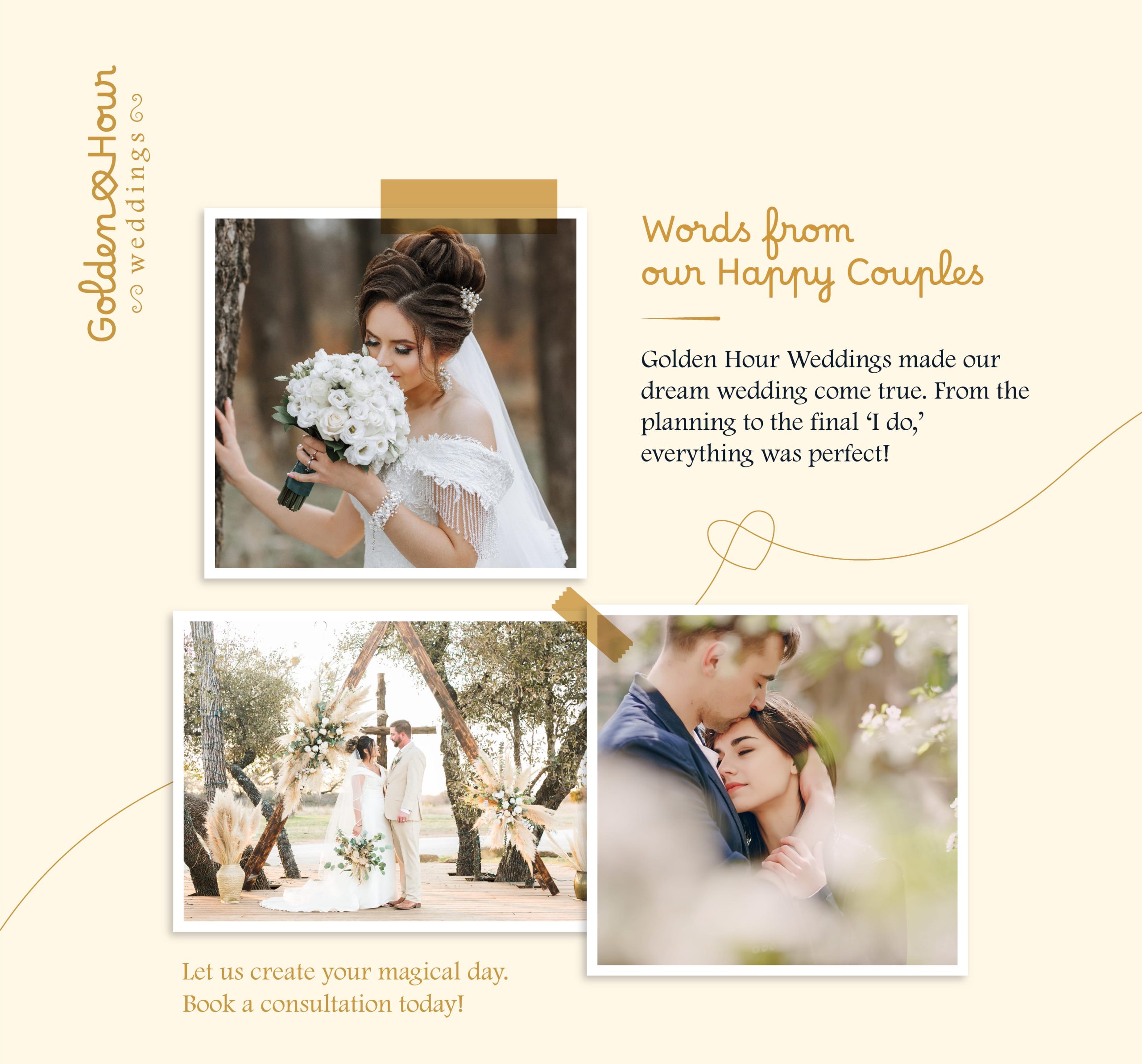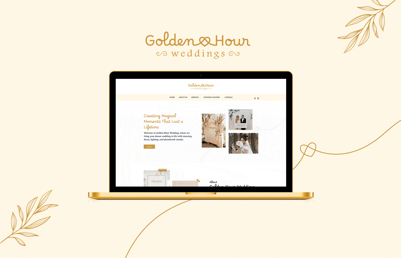 Golden Hour Weddings needed an identity that felt as evocative and fleeting as its namesake. The challenge was to move away from generic wedding aesthetics and create a brand that resonated with couples seeking a cinematic, warm, and deeply personal experience. We needed to design a system that felt high-end and professional while maintaining an approachable, sun-drenched emotional core.